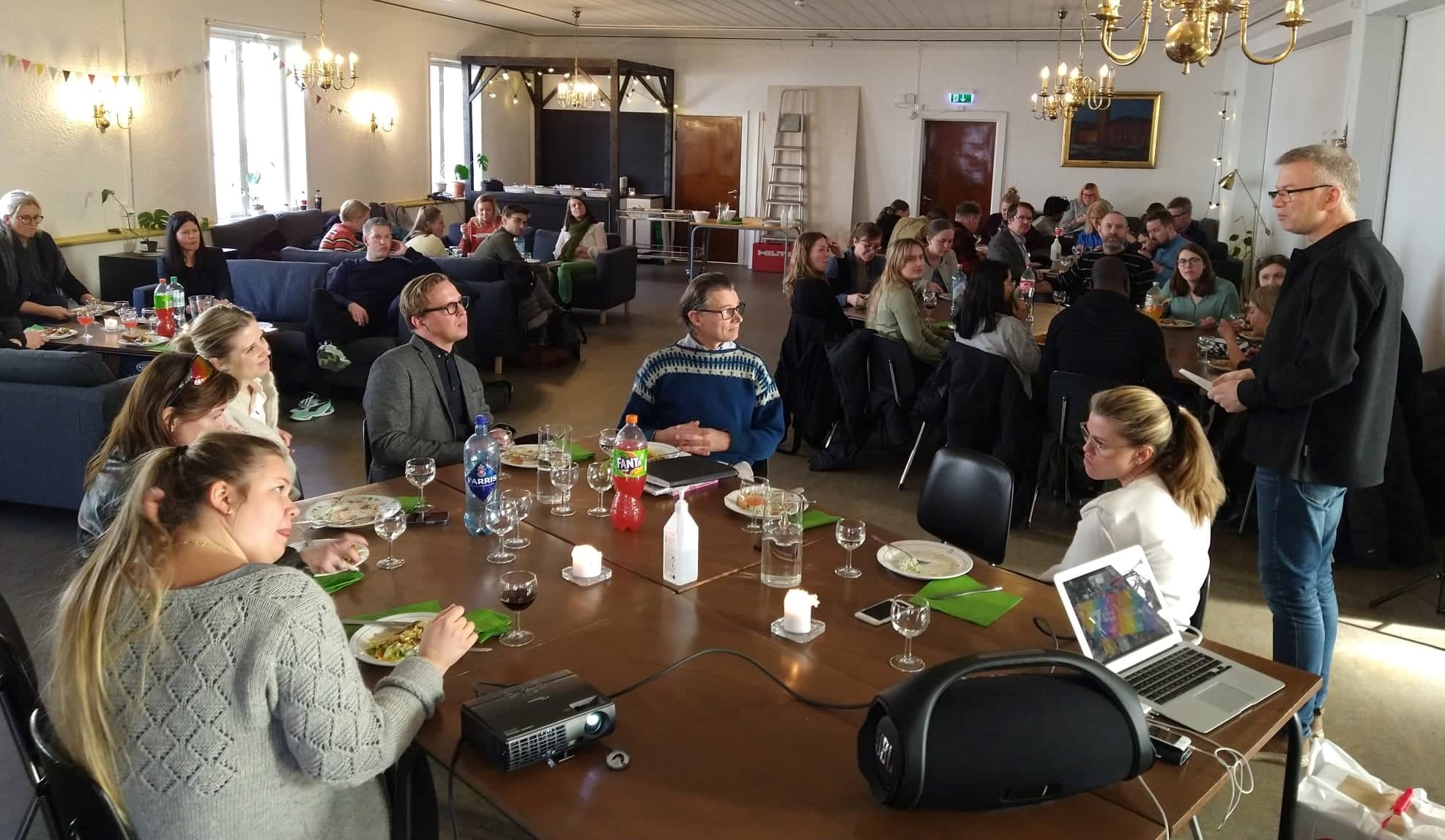 Øystein, Thea og kollegaer samlet til avskjedslunch i Ila kirke. Torsdag 3. Mars var det i Ila Kirke dekket til en siste lunsj med Øystein Magelssen som generalsekretær og Thea Solstad som assisterende generalsekretær og leder for marked og kommunikasjonsavdelingen. Sammen har disse to pekt ut retning og gjort KFUK-KFUM til en tydeligere aktør i kirke og samfunn de siste seks årene.