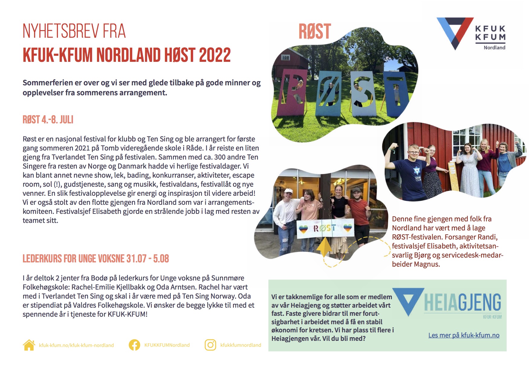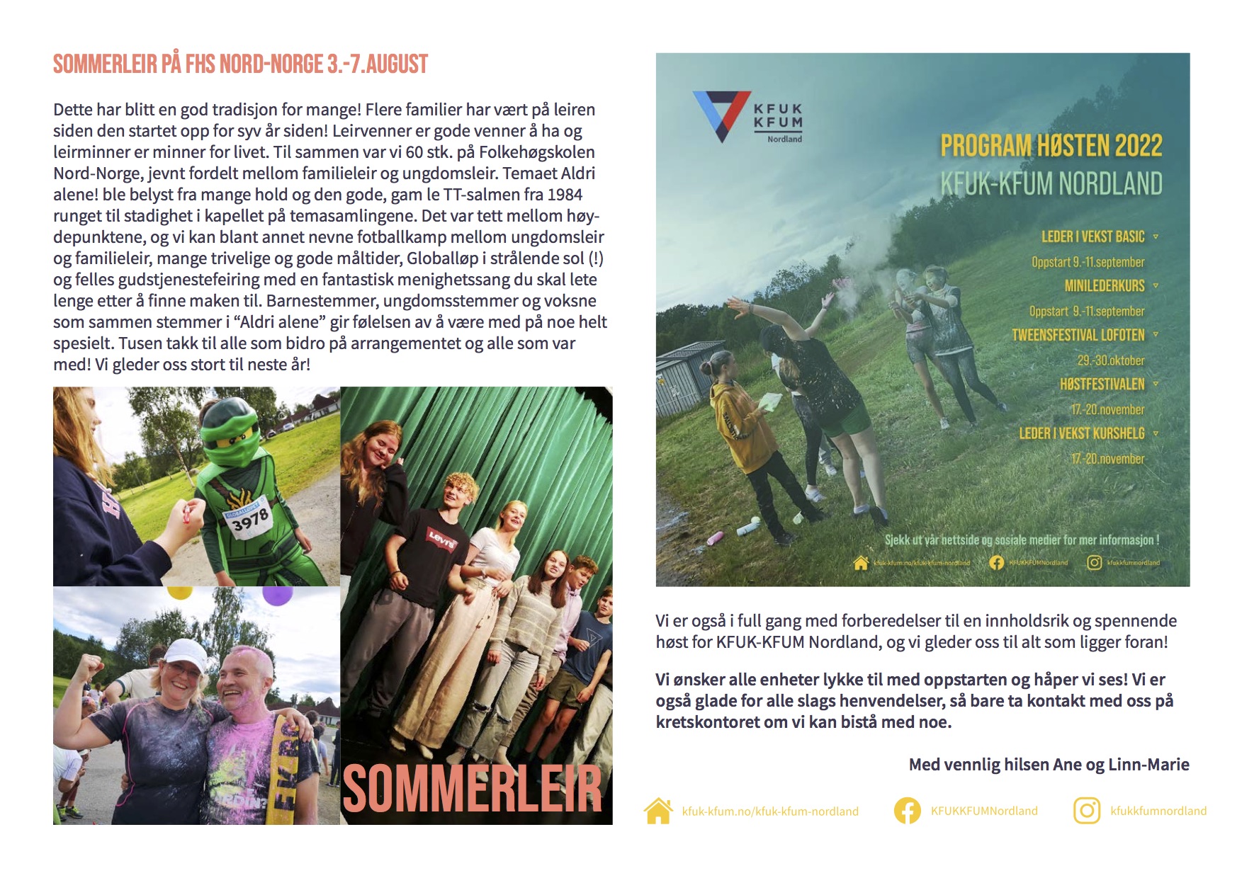 Her kan du se bilder og lese litt om sommerens aktiviteter, og du kan også lese om hva som skjer denne høsten i kretsen. Ønsker du å motta nyhetsbrevet på mail, ta kontakt med Linn-Marie, linn-marie.estensen@kfuk-kfum.no.